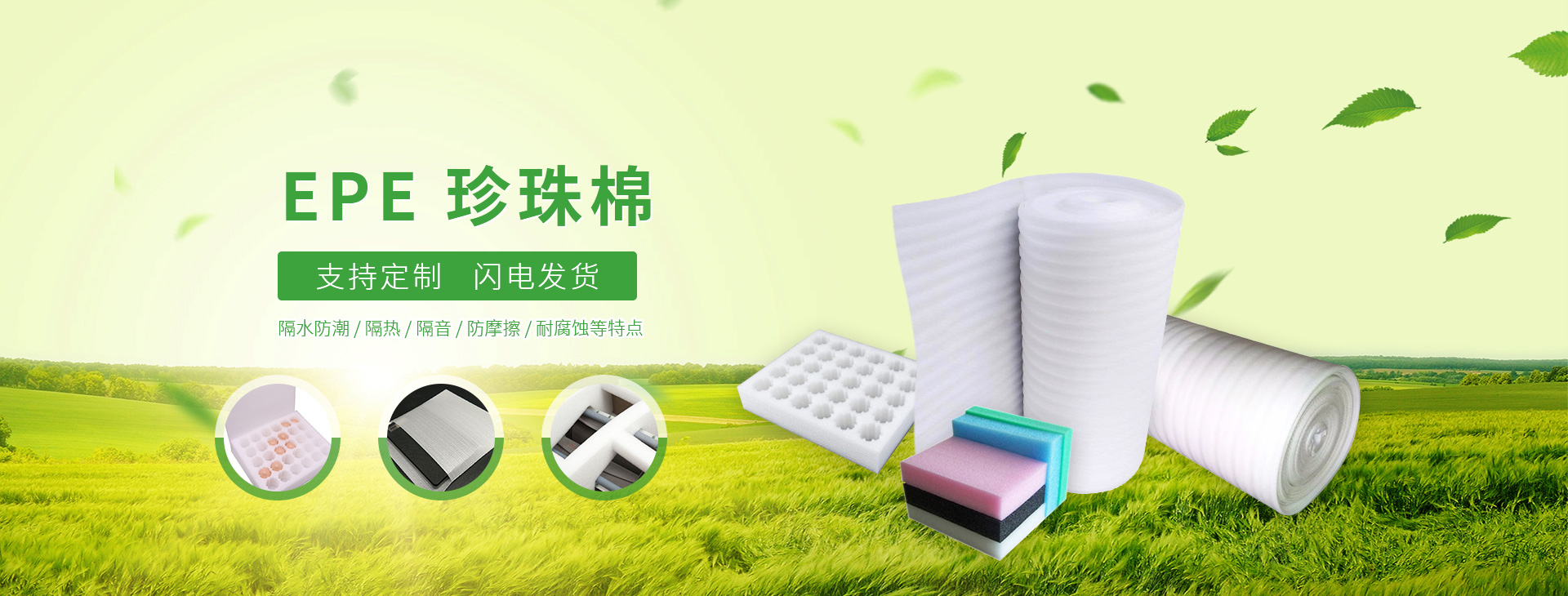 公司主要產(chǎn)品包括:PE纏繞膜、氣泡膜、拉伸膜、珍珠棉(EPE)、高低壓包裝膜、包裝袋等;可加工EPE珍珠棉單片(0.5-10mm)、EPE復(fù)合片(10-80mm);氣墊薄膜裁片、制袋;高低壓平口袋、方底袋等各類塑料包裝產(chǎn)品。本廠交貨及時(shí),品質(zhì)穩(wěn)定,服務(wù)周到,受到客戶的信賴。